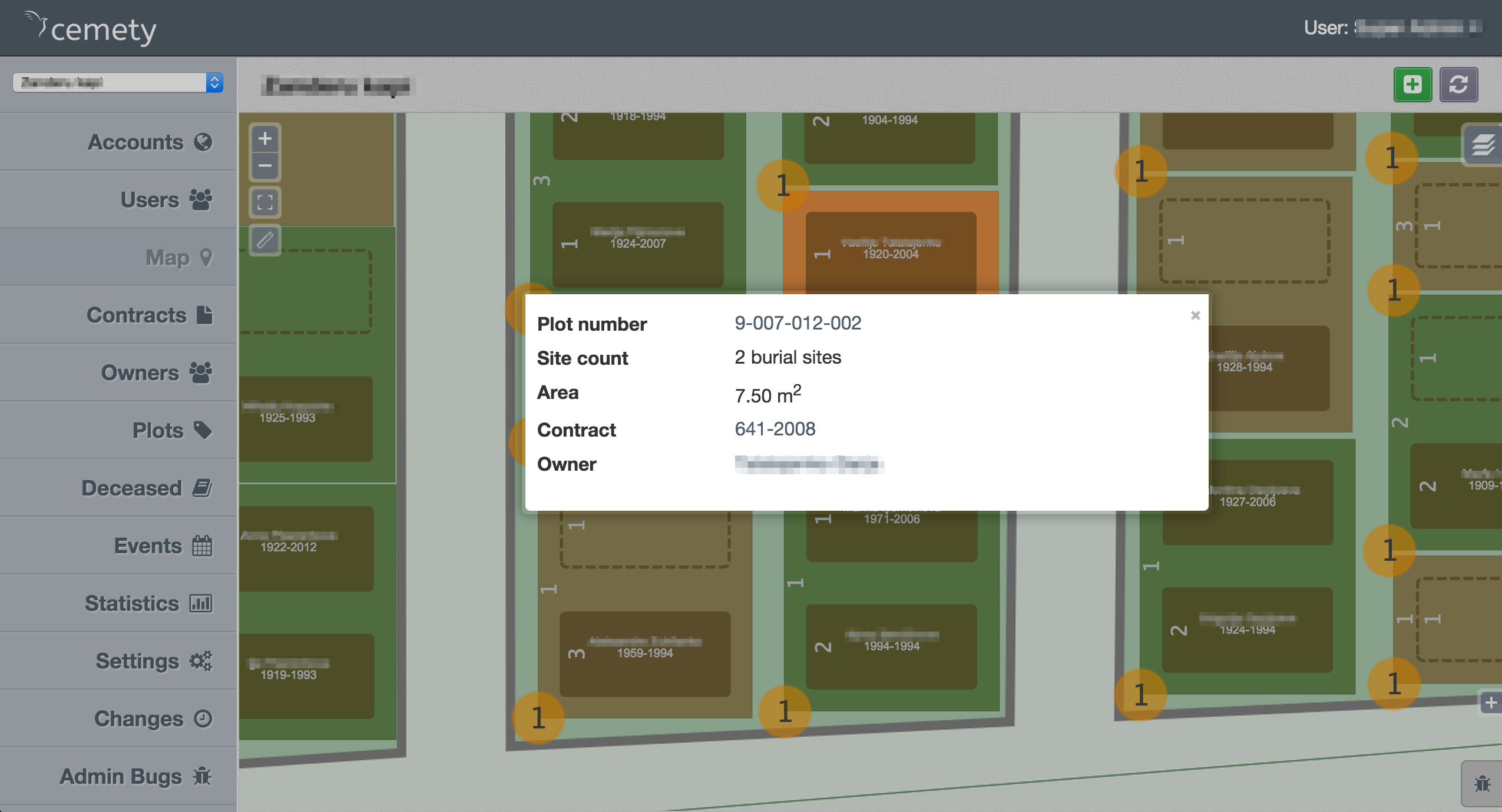 The CEMETY system is designed both for cemetery maintenance personnel and for resident convenience. Therefore, two portals are available: one for cemetery administration, and one for residents, where they can search for burial places and check maps.